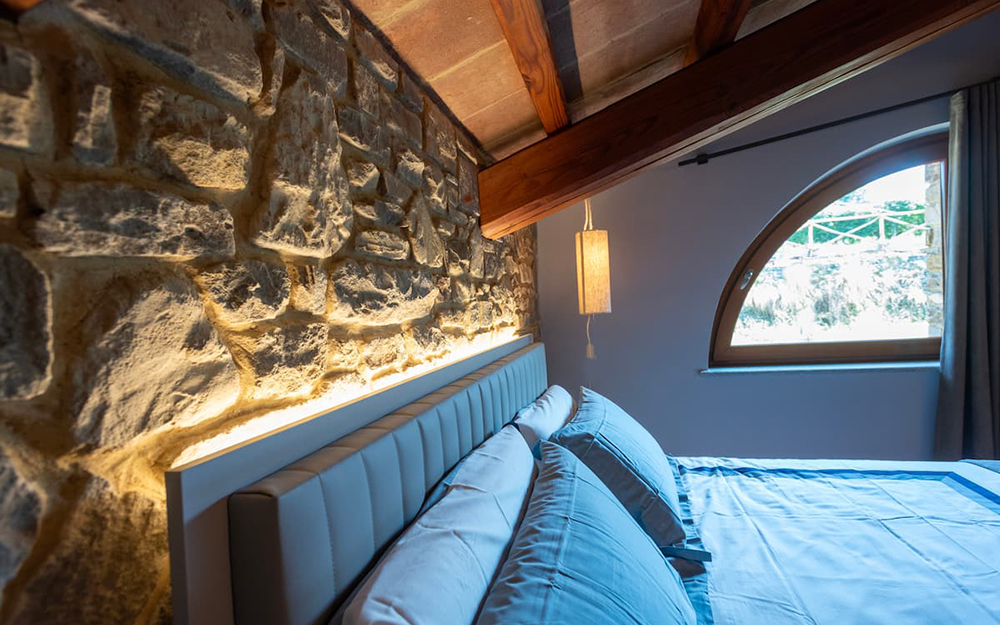 La camera da letto soppalcata è un piccolo capolavoro di design, con un letto sospeso e sotto illuminato che regala un tocco di magia. Armadio e comodini sono a disposizione per garantire il massimo comfort e funzionalità.